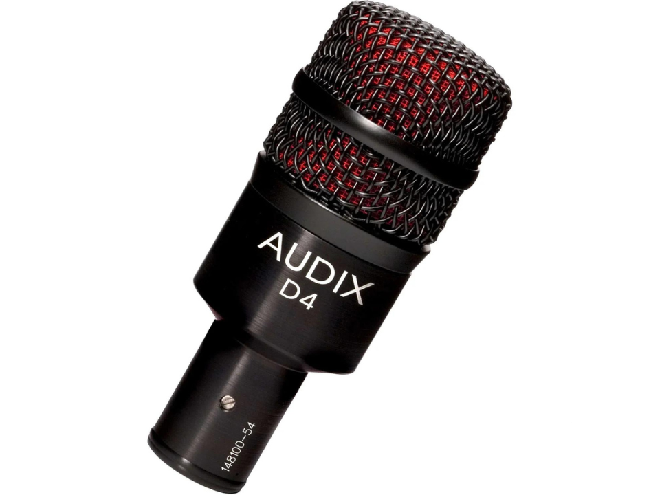 Micro nhạc cụ Audix D4 dùng cho kick drum mini, floor tom, djembe, brass, woodwinds. Micro dynamic Audix D4 là sản phẩm micro dây chuyên nghiệp dùng để thu âm trống jazz hoặc các loại nhạc cụ đặc trưng. Model microphone dây này nằm trong set Audix DP 7: bộ 7 micro thu âm trống jazz chuyên nghiệp sử dụng trên sân khấu hoặc phòng thu, studio. Điểm nổi bật của sản phẩm chính là khả năng đáp ứng tần số cao: từ 40Hz - 18kHz, và xử lý mức SPL vượt quá 144dB: ứng dụng hoàn hảo cho các sân khấu gồm nhiều nhạc cụ, thiết bị khác nhau.