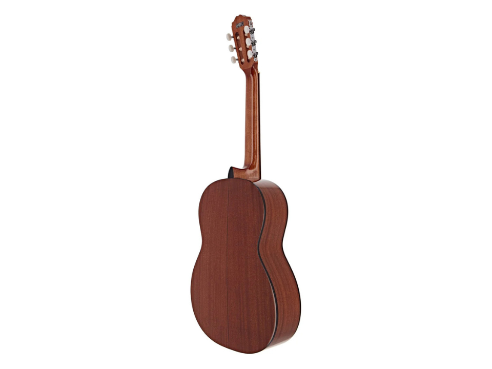 Cần đàn làm từ gỗ Mahogany có độ bền cao, hạn chế cong vênh. Mặt phím bằng gỗ Laurel cho cảm giác mượt mà khi bấm phím. Đàn sử dụng dây nylon – mềm tay, không gây đau khi chơi lâu, lý tưởng cho người mới học.