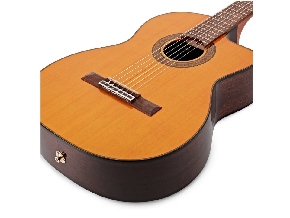 GC5CE mang phong cách cổ điển với dây nylon và kiểu dáng mềm mại. Thiết kế mặt cắt Venetian giúp người chơi dễ dàng tiếp cận các phím cao, đồng thời tạo nên nét đẹp tinh tế, thu hút. Cần đàn kiểu dovetail chắc chắn, các nốt hợp âm khảm tinh xảo cùng lớp sơn phủ bóng toàn thân tạo nên vẻ ngoài trang nhã và đẳng cấp.