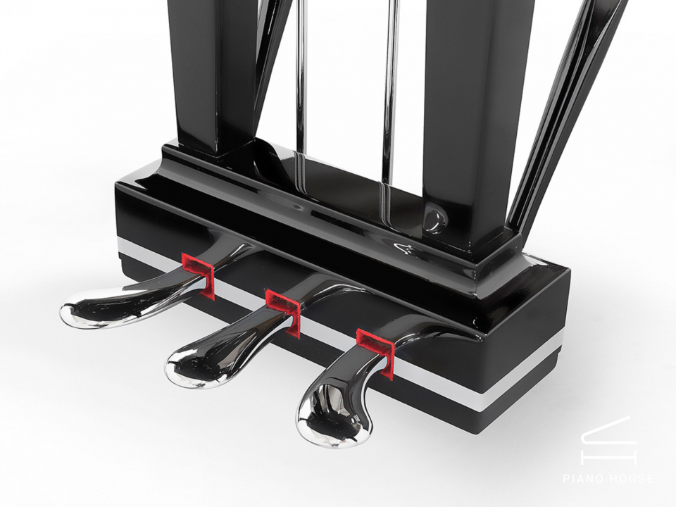 Bên trong của nhạc cụ này, bao gồm cả thùng đàn, được sơn hoàn toàn bằng polyester màu đen bóng. Khung sắt được hoàn thiện bằng màu bạc và tất cả các thành phần kim loại đều được mạ chrome. Những tính năng này kết hợp với nhau để tạo ra một cây đàn piano F228 khác thường, được hình thành bởi kiến trúc nổi tiếng thế giới Norman Foster.