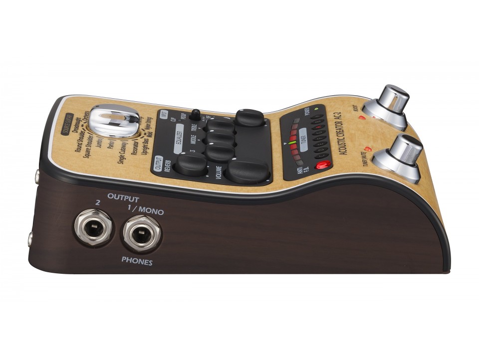 Phơ bàn Zoom AC-2 có khoảng 20 tùy chọn về đàn thùng, tùy chọn về Pickup, bộ EQ, bộ chống cộng hưởng cùng hiệu ứng reverb tạo độ vang. Chưa hết, có chức năng Boost lgiúp kích tiếng đàn của người chơi lên rõ rệt.